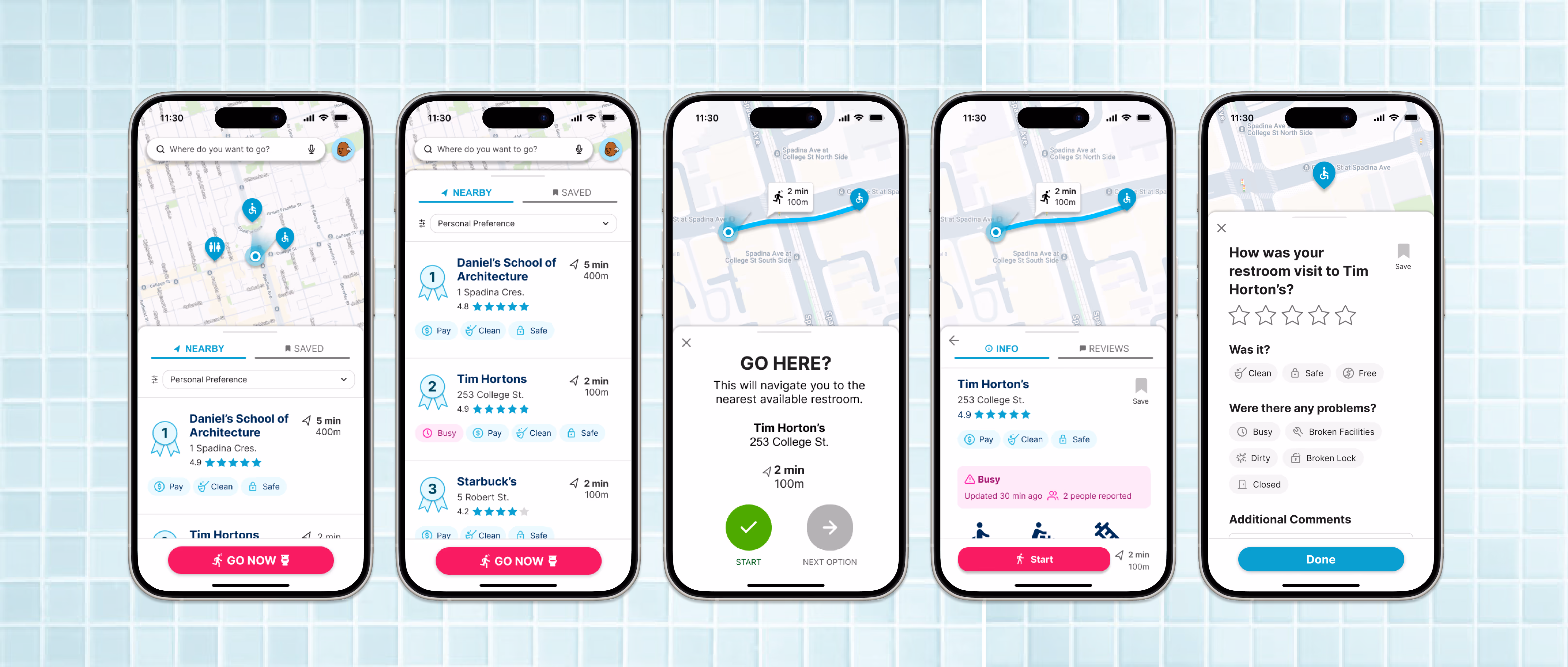 A RESTROOM NAVIGATION TOOL GEARED TOWARDS OLDER ADULTS.