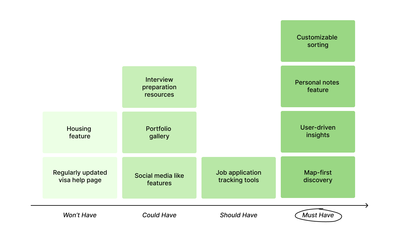 Using different prioritization matrices and rooting the solution in user insights, I was able to narrow my scope to what was most important for the final prototype.