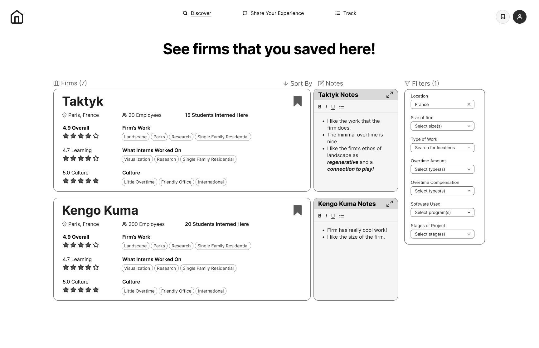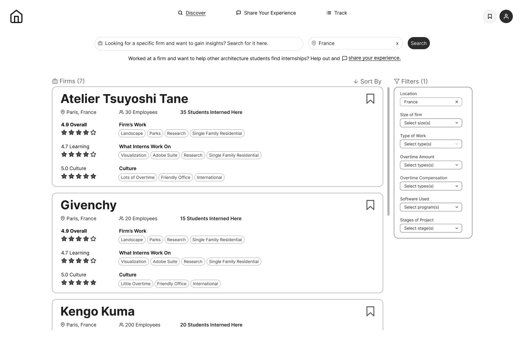 Architecture students need a way to find firms they can intern at and insights into these firms in order to gain meaningful internship experiences.