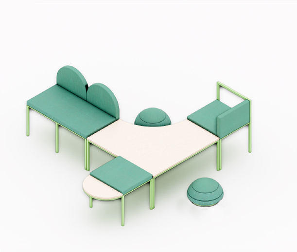 While helping in developing the design for the project, I created over 100+ iterations of the different furniture pieces and combinations that the modular family could be comprised of and combine into.