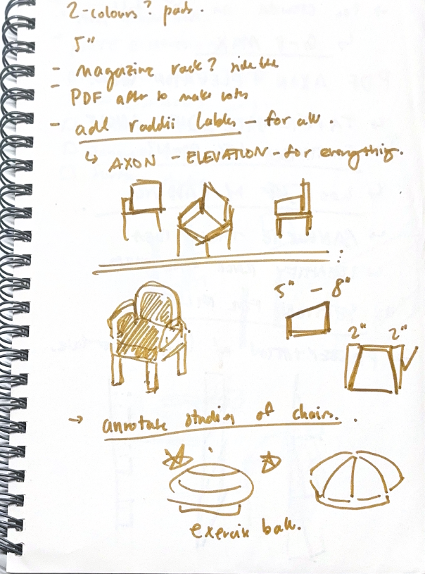 **Please note that the technical shop drawings and completion of the fabrication of the chairs were completed after I finished my time working on the project. The visuals featured on this page were completed by myself and the other team members.**