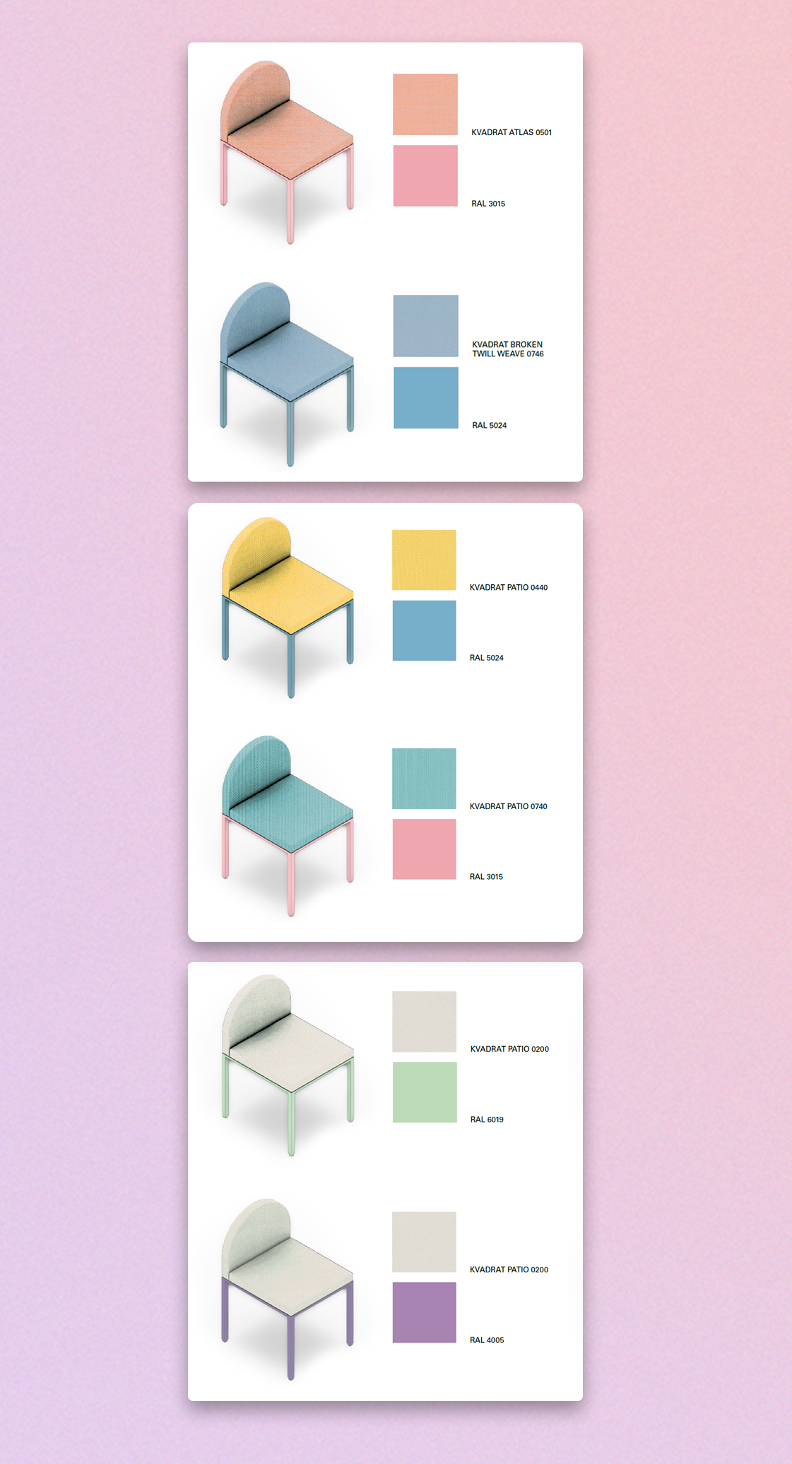 Colour tests I created from CMOA's branding guide and on the base chair model↓